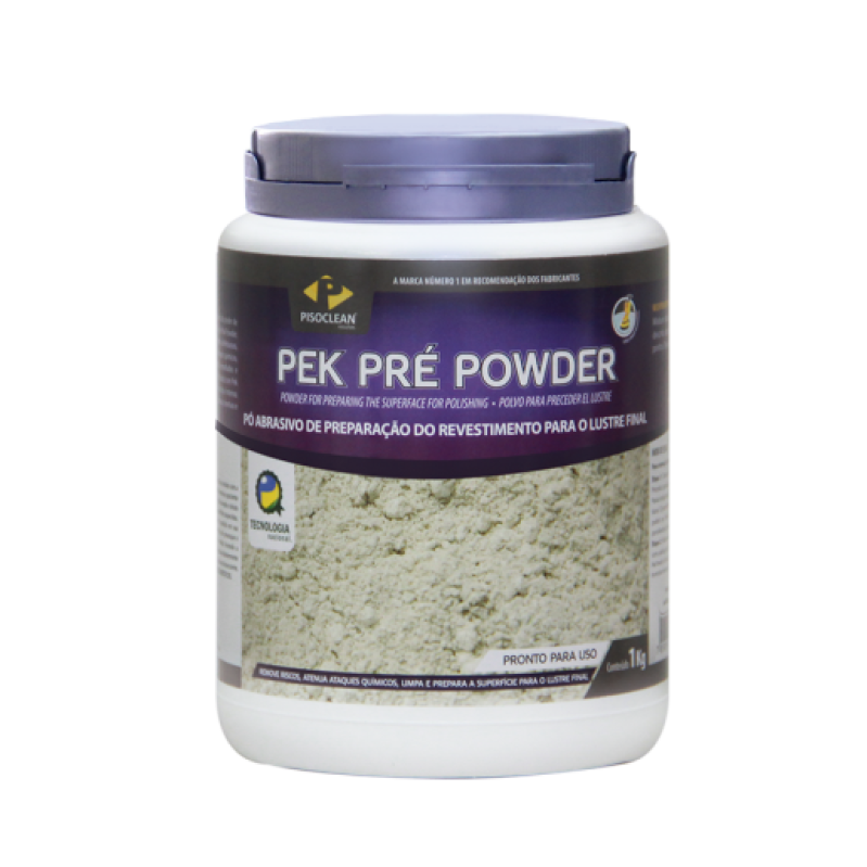 O Pek Pré Powder 1kg da Pisoclean é um pó abrasivo de alto poder de corte, indicado para a preparação de pisos (porcelanatos, cerâmicas, mármores) antes do polimento final com Pek Powder. Ele remove riscos, manchas, sujeiras infiltradas e recupera o brilho de pisos acetinados.